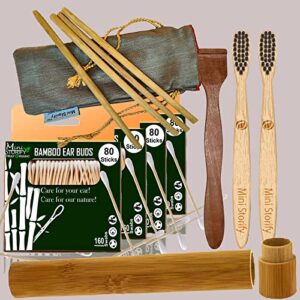 4 Bamboo Cotton Ear Buds 80 Stems|2 Adult bamboo tooth brushOral cleaning|2 Neem Tongue Scraper|2 Oval Loofah Pad|6 Straw8″)