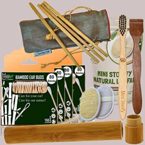 4 Bamboo Cotton Ear Buds 80 Stems|1 Kids bamboo toothbrush|1 bamboo travel case|1 Pure Neem Tongue Cleaner|2 Oval Loofah|4 Straw8inch)