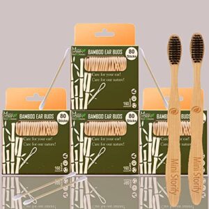 4 Bamboo Cotton Ear Buds 80 Wood Stems/160 Swabs |2 Adult bamboo tooth brush (PACK OF 6)