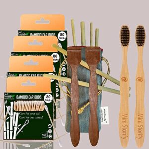 4 Bamboo Cotton Ear Buds 80 Wood Stems/160 Swabs|2 Adult Bamboo toothbrush |2 Neem Tongue Scraper for Adults & Kids|6 Bamboo Straw(8 inch)